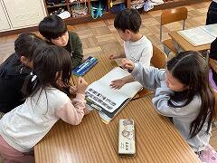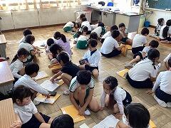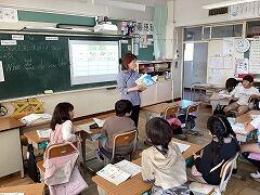 5年生で柏市の「子ども司書講座」を受講している児童が,講座内の活動として1年生に絵本の読み聞かせを行いました本が大好きな“未来の”子ども司書さん,絵本に興味を持ってもらうために実物投影機を使用して絵本を映し出したり,より感情を込めて読んだりと,工夫や努力が1年生のみんなに伝わったと思います