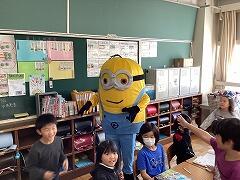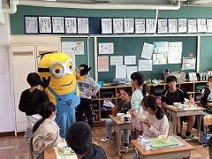 ミニオンは,給食中にも各クラスを訪れて二小ちゃんたちを喜ばせてくれました