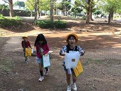 2・3校時に,1年生が大津ケ丘中央公園へたんけんに行ってきました生活科「あきとなかよし」の学習で使うどんぐりやまつぼっくり,落ち葉など,いろいろと拾い集めてきました