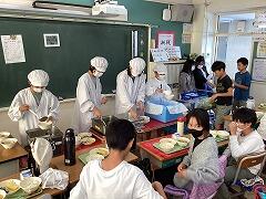 1分前には,自席に戻って学習準備をするクラスもありますね。4校時に教室を離れて学習するクラスは,あらかじめ給食準備をしてから出発しています。