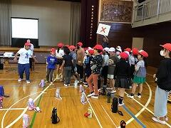 3年生の体育で,スポーツクラブのトレーナーをお招きして「体つくり」のご指導をいただきました。マットやラダー,平均台などを使ったサーキットで色々な運動をして,とってもいい汗をかくことができました