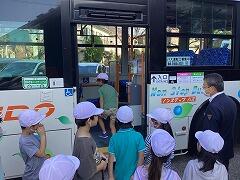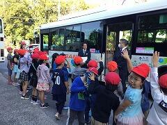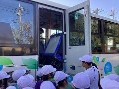 その後に,二小ちゃんたちのためにチャーターしてくださった本物の路線バス2台に,実際に乗車してみました。入口や出口はもちろん,エンジンや非常口,車いすでの乗車方法についても教えていただきました。今度,お出かけなどで路線バスに乗る時に役立てられるといいですね
