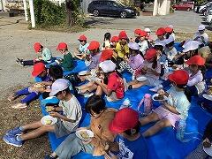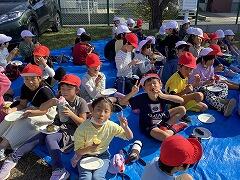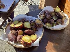 学習の後は,お待ちかねのさつまいも試食タイムです秋晴れのさわやかな青空の下で,みんなで焼き立てのおいもをおいしくいただきました