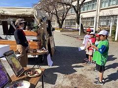 2年生の出前授業第2弾は,おいもやさんmoimoiの加川さんを講師にお招きして,さつまいもの種類やおいしい焼き芋の作り方を教わる「おいもの会」です事前に生活科の学習で収穫した大津二小の花壇で収穫した「べにはるか」に加えて,「白あずま」「あやこまち」「シルクスイート」といった違う品種のさつまいもも一緒に焼いてきてくださいました。