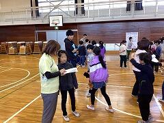 授業参観終了後の引き渡し訓練は,雨天のため校舎内での実施となりました。足元が悪い中,二小ちゃんたちのためにご都合をつけてお越しくださり,ありがとうございました