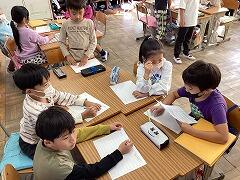 )をよく見て,自分たちが見学していたお店・事業所などについて話し合って,原案を練っていきます