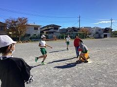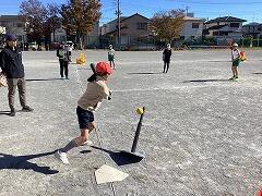 5年生の体育では,ベースボール型ゲームとして「ティーボール」に取り組んでいます。ピッチャーが投球するのではなく,バッティングティーにボールを乗せて,バッティングして走塁していきます打った球が遠くに飛ぶと,やっぱり気持ちいいですね~
