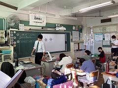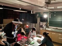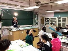 6年生が理科「月と太陽」で,月と太陽の位置関係を掴むための学習に取り組んでいました。理科室を暗くして,ライトを太陽に見立てて,半月や満月,三日月や新月などに見える理由を知ることができました