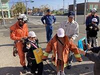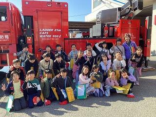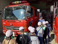 3年生の社会科「火事からくらしを守る」の学習をより深めるため,沼南消防署へ見学に行ってきましたはしご車やポンプ車,救急車などの消防車両見学から始まり,救助活動で使用する用具のデモンストレーションや消防服着用体験,庁舎内見学,要救助者の救護活動,放水作業の見学など,盛りだくさんの内容で大変勉強になりました