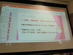 できあがりのイメージを持たせるために,事前に担任の藤原先生がプレゼンを見せてくれました。テーマは「ジャニーズの人気のひみつ」!!そんな秘密があったのか!!まだまだ,知らなかったことがたくさんありますね。