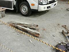 砂場の手前にある幅跳び用の踏切板も交換しました。古い板の下のコンクリートから直さなくてはいけないらしく,業者の方が悩みながら作業をしてくれていました。