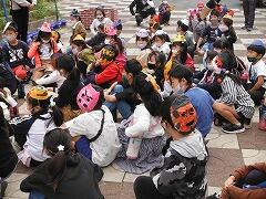 手作りのお面をつけてみんなで歩いていても,お菓子をねだることはしませんでした。