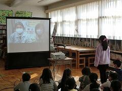そもそも,「下水って何?」から始まり,「家で流したよごれた水はどこに行くのか。」「下水をきれいにする仕組み」「下水道をいつでも使えるようにしていること」など,動画を見ながらお話してくれました。