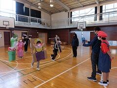 6年生全員からの素敵なお礼の言葉から始まり,「レッド・ブラック・ブルー・イエロー」の『ニコニコマン』が登場しました。最後の最後まで頑張ってくれます。