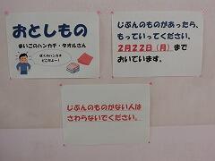 昇降口前の階段下に落とし物が展示されています。昨日より半分近く無くなっていましたが,まだ,持ち主の見つからないハンカチや手袋が,寂しそうに残っていました。名前を書いておいていただけると,助かります。