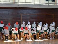 さくらんぼ・たんぽぽクラスが,6年生を送る会の練習をしていました。