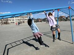 今日の昼休みは,昇降口を出ると冷たい風がぴゅ~と吹いていましたが,ニコちゃん達は元気いっぱいに校庭に飛び出していきました。担任の先生と一緒におにごっこをする子,二重とびの特訓をする子,遊具にひたすら挑戦する子!!