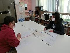 中堅の先生が若手の先生の授業を見て指導したり,一緒に教材を作りながらどのように授業を行っていくかを話したりしています。若手はもちろん,指導する先生にとっても学びの多い時間となっています。