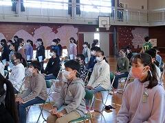 卒業式の予行練習を行いました。先週よりももっと声がはっきりと姿勢もよくなっていました。当日が,楽しみです。