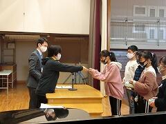 本来,卒業式の中で行われていた6年間皆勤賞の表彰を予行練習の最後の時間に行われました。休まずに登校できるって,すごいことですね。自分のがんばりと,お家の方の協力に感謝です。