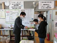 校内環境の状態を学校外の方にもチェックしてもらうことになりました。そこで,橋本PTA会長に来校していただき,校内の荷物の置き方など,教職員とは違う視点から問題点などを教えていただくのが目的です。