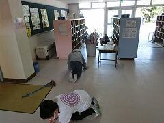 卒業式準備のために,5年生が体育館の大掃除とワックスがけを行いました。