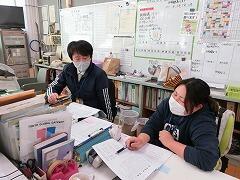 各自,自分の飛散防止シートを持って委員会の教室に移動して,振り返りと次年度への引継ぎ事項などの確認を行いました。