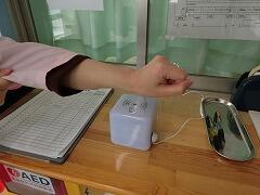 職員玄関に体温計を設置しました。
