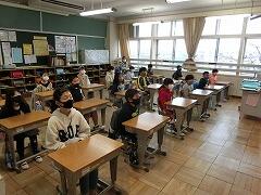 今月の生活目標は「1年間のふりかえりをしよう」です。平井先生から,4月のころと比べて,自分がどんなことができるようになったのか,頑張ったのかを振り返ってみましょう。そして,次の学年ではどんなことを頑張るのかを考える3月にしましょう。というお話がありました。どのクラスも真剣に話を聞いていましたね。