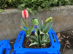 月曜日になったら,1年生のチューリップがぐんと伸びて,花が開き始めているチューリップもありました。