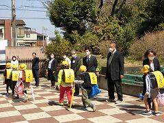 転退職される先生方に校門のところで,直接,お別れができました。新しい場所でのご活躍を期待しております。
