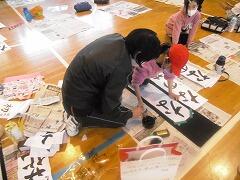 1年生は硬筆で「ゆき」,2年生はサインペンで「元気な子」