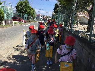 帰りも「しずか~に!」という約束を守って並んで移動できていました。
