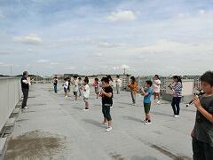 屋上で