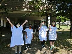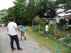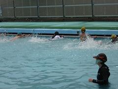 2年ぶりの水泳です。水慣れ,プール遊びを中心に3回設定しました。天候によってどのくらい入れるのか…。初日の今日は,朝から太陽が出てプール日和でした。