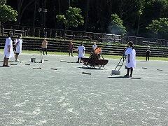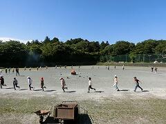 3年1組のみんなが算数の授業だ!と校庭へ飛び出していきました。