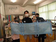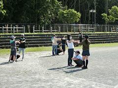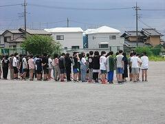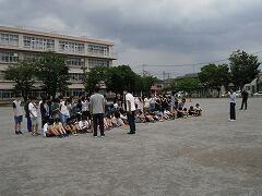 撮影している途中で急に雨が降り出し,中断。すぐに雨があがったので,再度,校庭に出て撮影しました。校舎をバックにちょっとまぶしい顔になっているかも…しれません。