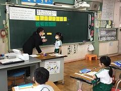 乾先生の大学の先生も授業を参観されました。「1年生のこの時期にきちんと学習に向かう姿勢が素晴らしいですね。」と1年1組の二小ちゃん達をほめていただきました。