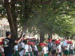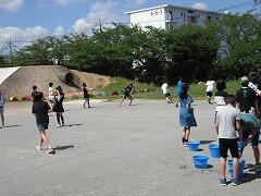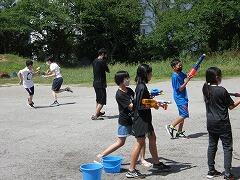 2時間目は1組,3時間目は2組が思いっきり走り回って水をかけ合って…楽しんでいました。
