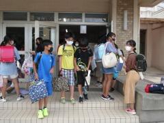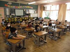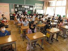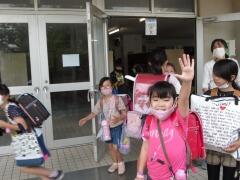 校長先生からは,生活のリズムを崩さないで,外遊びをたくさんしましょう。元気に過ごして,9月にみんなと会える日を楽しみに待っています。というお話をしました。最後に,1学期で転校してしまうお友だちにもあいさつしてもらいました。