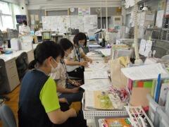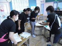 9月のスポーツデーに向けて,低学年の先生達が楽しそうに準備しています。