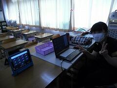2年生は理科室から,すぐ下の教室にいる今井先生とつながっています。