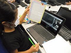 1年生の教室では,授業の中でもGooglemeetを使ったり,デジタル教科書を使ってわかりやすく授業を行っていました。子ども達もiPadのつかい方もばっちりです。