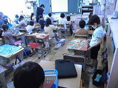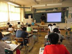 3年生は,パソコンルームを使っていました。黒板に書かれたローマ字で書かれた読み方をローマ字表を見ながら答えを紙に書き込んでいました。