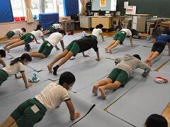 今日は1・2年生のスポーツデーの予定でしたが,雨が降ってしまったので来週に延期となりました。そこで,今日はクラスごとにスポーツデー練習見学会を体育館で行いました。