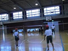 最後は,ネットを挟んで実際にバトミントンをやってみました。流通経済大学のラグビー部の方々もボランティアとしてシャトルを拾ったり,消毒をしてくれたりしました。