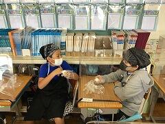 感染状況は落ち着いてきていますが,予防として半分の先生達はパソコン室からオンラインで授業の様子を参観しました。