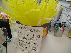 体育専科の大坂先生発案で,頑張ったみんなのためにメダルがプレゼントされました。たくさんの先生たちが手伝ってくれて,職員室でパウチしたり,ひもをつけたりと・・・愛情がいっぱいつまったメダルです。大切にしましょうね。