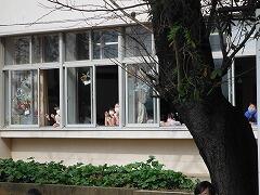 1年生の教室の窓が,すてきな仲間たちでキラキラと輝いています。