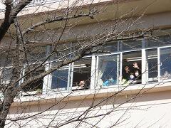 走り回ると,おしりのかわいいしっぽが風にたなびいていました。教室からも大きな拍手喝采!!